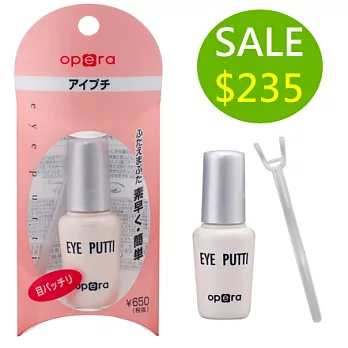 使用方法:先用沾濕的化妝棉擦去眼皮上的油脂,並將『opera EYE PUTTI 雙眼皮定型液/假睫毛膠』塗於眼皮褶線上方,再使用Y型調整棒將眼皮撐開,即可創造出動人的雙眼皮效果。